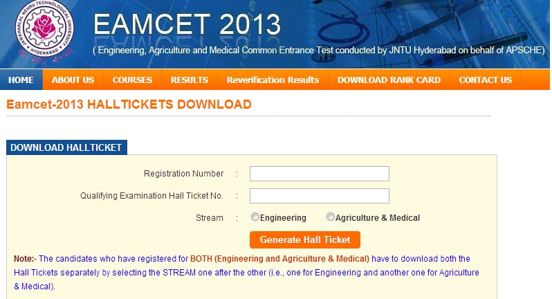 Procedure for Downloading your EAMCET 2013 Hall Ticket: