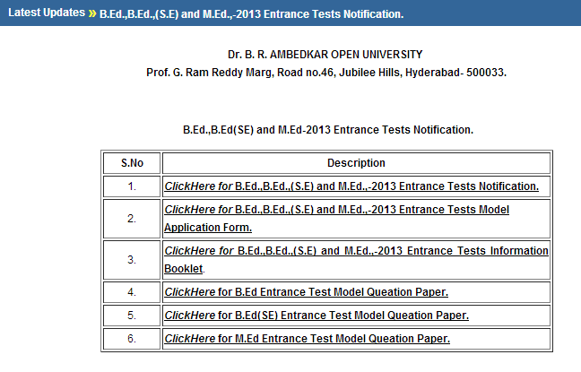 BRAOU B.Ed, B.Ed(SE) and M.Ed entrance tests notification 2013 at braou.ac.in……