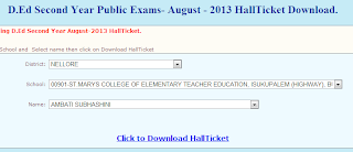 The students need to maintain some procedure to download their D.Ed Second year Hall tickets for this August-2013. First the candidate need to login into the link which was given below. Then need to enter the details in the required fields then can able to print their hall ticket and can submit at the time of the examination.