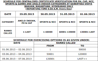 The candidates who are qualified in Polycet 2013 and the non qualified minority candidates who have applied to the convenor based on the ssc marks are now informed that to attend the certificate verification on near by help centers which can be viewed in the notification.