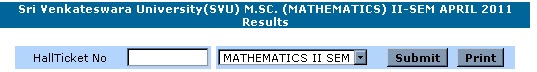 SRI VENKATESWARA UNIVERSITY (SVU) announced the results for the POST GRADUATION COURSE for MASTER OF SCIENCES in MATHEMATICS II SEMESTER which are conducted in april 2011.